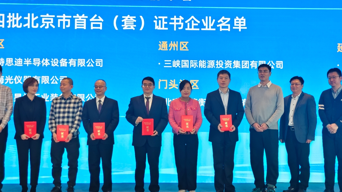 北京市首臺(套)重大技術裝備證書